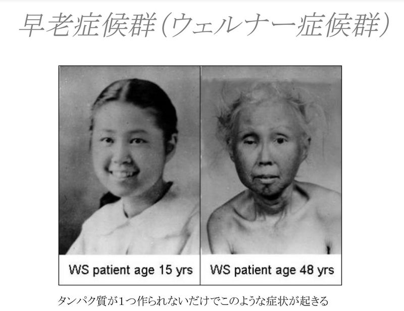 - 老化というのはタンパク質の欠損が原因で起きる。