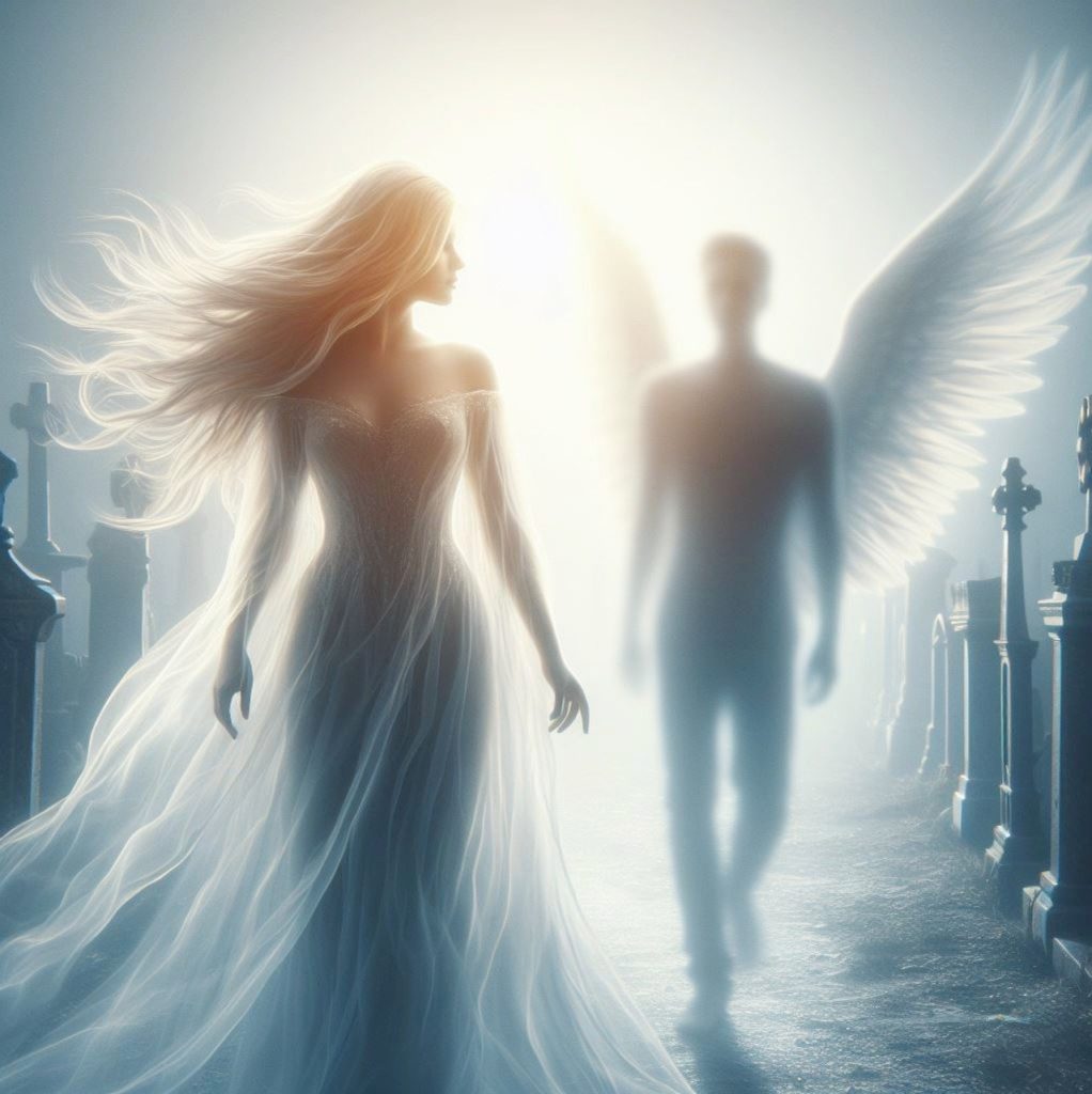 透明でアクアチックな天使に会いました。羽根があって空中を遊泳しながら私を導こうとしています。大きさは自分と同じくらい。