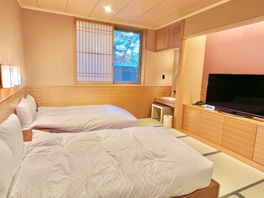 お布団が凹んでるのは私が部屋に入ってすぐになだれ込むように寝っ転がったため・・・💧 ツアー約3時間、歩き続けて疲れがマックスでした。