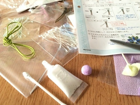 通販で購入した手作りキットの髪飾りを、